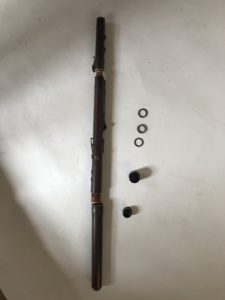 Flûte traversière de Clair Godefroy aîné vers 1840/1850. Flûte numérotée et signée de Clair Godefroy aîné à Paris du milieu du XIX éme siècle avec comme particularité et invention, les trois bagues qui permettent de varier le son. Cet objet est vendu.