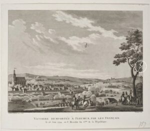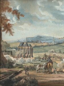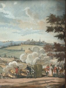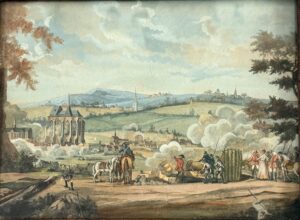 Gouache représentant la prise de l’Ille en 1792 par les troupes françaises à la fin du XVIII ème siècle.