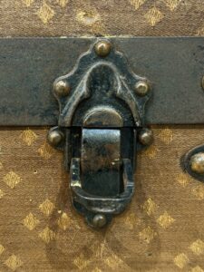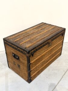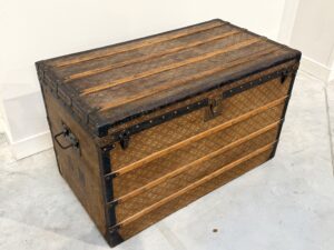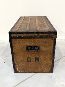 La malle a subi quelques transformation comme l’enlèvement de la toile intérieur et des renforts à l’arrière.