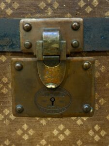 Grande malle de voyage de la marque Aux États-Unis, 229, rue Saint-Honoré, Paris.