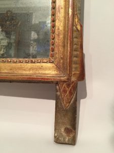 Petit miroir d’époque Louis XVI en bois doré avec son miroir au mercure.
