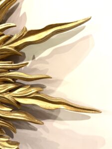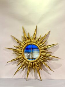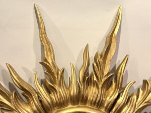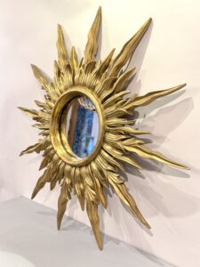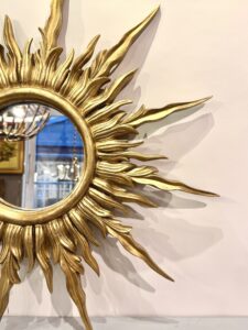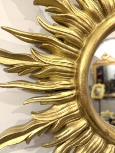 Miroir doré dit miroir soleil en bois doré à l’or.