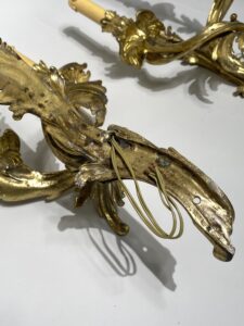 Paire d’appliques en bronze doré et ciselé, dans le style Louis XV, d’époque XIX ème siècle.
