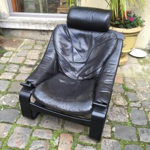 Paire de fauteuil en cuir de Fribyter. Le Paire de fauteuils « Kroken » de Ake FRIBYTER datant des années 80 Editeur : Nelo. Structure en hêtre teinté noir. Assises en cuir noir. dimensions: 80 cm de largeur, 90 cm de profondeur et 86,5 cm de hauteur. Cet objet est vendu.