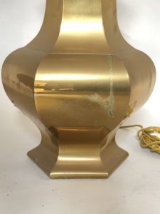 Paire de lampe en laiton des années 1970. Paire de lampe de la maison Jansen dans les années 1970 de grande taille. De forme hexagonale, avec un petit choc dans un angle. Dimensions: Cet objet est vendu.