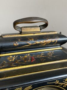 Clock of the 19th century, in the Japanese style, resting on four feet.