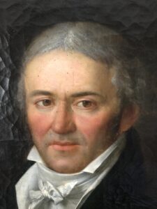 Portrait d’un homme de qualité à l’âge d’environ 40 ans avec la médaille de l’orde de Saint Louis en 1815, avec des fleurs de lyse.