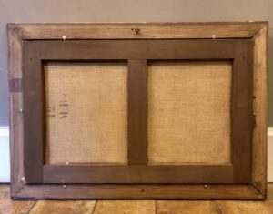 Huile sur toile, châssis remplacé et une marque le long du châssis en haut à droite.