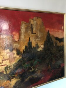 Tableau représentant les Baux de Provence peint en 1961, peint sur panneau de bois.