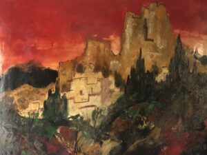 Painting depicting Les Baux de Provence, painted in 1961 on a wooden panel.